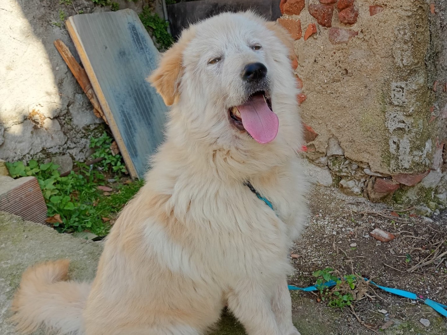 Cucciolone gioioso, taglia media, attualmente 7 mesi quindi non crescerà molto di più, trovato da cucciolo abbandonato. Si trova in Calabria viaggia tramite staffetta autorizzata per una buona adozione.