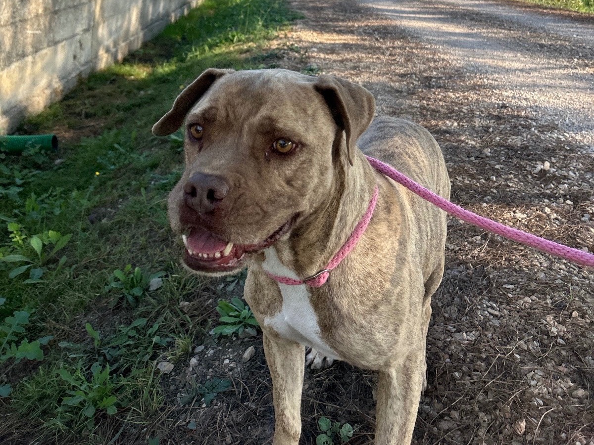 Grino è un adorabile cagnolino di taglia media che attualmente si trova a Latina. Questo maschio, nato a settembre 2017, è un incrocio tra Pitbull e meticcio, e ha un pelo corto che rende la sua manutenzione semplice. Grino è un vero tesoro: dolcissimo e amorevole con le persone, desidera solo stare in compagnia e ricevere tanti grattini. Ogni volta che ci si avvicina al suo box, Grino si avvicina, si siede e con pazienza attende il suo turno, dimostrando così la sua natura calma e gentile. Passeggiare con lui è un sogno, poiché cammina volentieri al fianco di chi lo conduce senza tirare. I suoi occhioni chiari e il suo sorrisone esprimono una bontà innata, rendendolo un compagno ideale. Grino è sverminato, vaccinato e sterilizzato, quindi pronto per una nuova avventura in famiglia. È adatto sia a persone anziane che a chi è alla prima esperienza con un cane, ed è pronto a donare amore incondizionato a chi farà entrare nella propria vita questo piccolo gioiello. Grino merita finalmente il suo lieto fine, dopo anni di attesa in canile.
