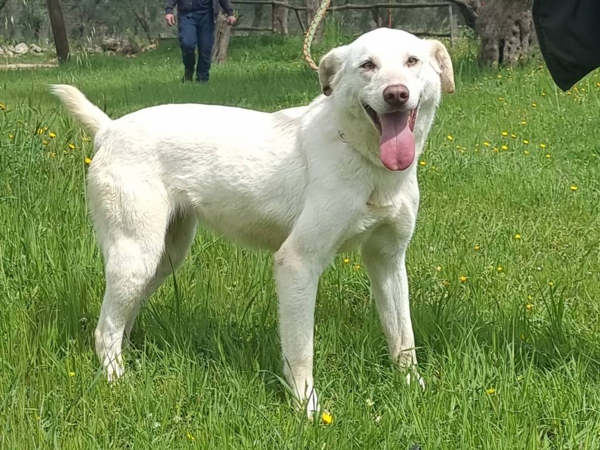 FROLLA, nata Agosto 2022, è una monella! Attiva, allegra, giocherellona, ama il contatto umano, compatibile con i suoi simili, adora le passeggiate ed è molto brava al guinzaglio. Faccia furbetta, nasino rosa, occhi giallo ambra. La domanda nasce spontanea: che ci fa' una meraviglia come lei in canile? Femmina, 18kg, adottabile dalla Puglia in su solo per vita in famiglia.