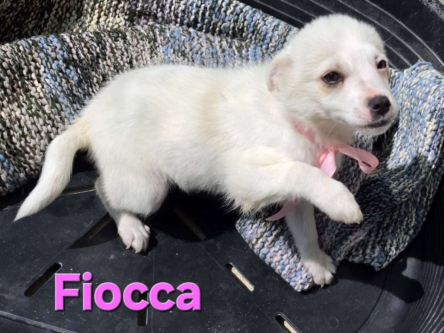 Ciao, mi chiamo Fiocca e sono una tenera cucciolina, nata a metà febbraio circa e di futura taglia piccola-media (stimato tra gli 8 e i 10 kg finali). Caratterialmente sono vivace, affettuosa e solare. Sono vaccinata, sverminata, microchippata e verrò affidata previo iter conoscitivo.