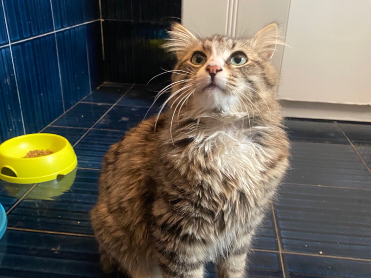 È stato probabilmente abbandonato perché è comparso allimprovviso davanti un palazzo e per 3 settimane ha dormito sullo zerbino miagolando e strusciandosi a tutti. È un gatto affettuoso anche con chi non conosce e adesso finalmente è in stallo.