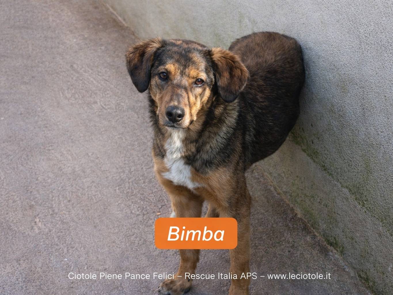 Bimba è una giovane meticcia di taglia media di un anno, arrivata in canile a soli sette mesi dopo un passato incerto che lha privata di una guida sicura. Nonostante questo, Bimba si mostra dolce e socievole, desiderosa di affetto e pronta a imparare. Sterilizzata e con tanta voglia di crescere, ha bisogno di una famiglia esperta e paziente che possa offrirle un percorso educativo basato su regole chiare e amorevoli, aiutandola a sviluppare sicurezza nel rapporto con le persone e nel camminare al guinzaglio. Bimba è pronta a trasformare la sua resilienza in gioia e lealtà, per costruire insieme un futuro sereno e pieno di affetto. Visibile a Torino, aspetta chi saprà donarle la casa che merita.