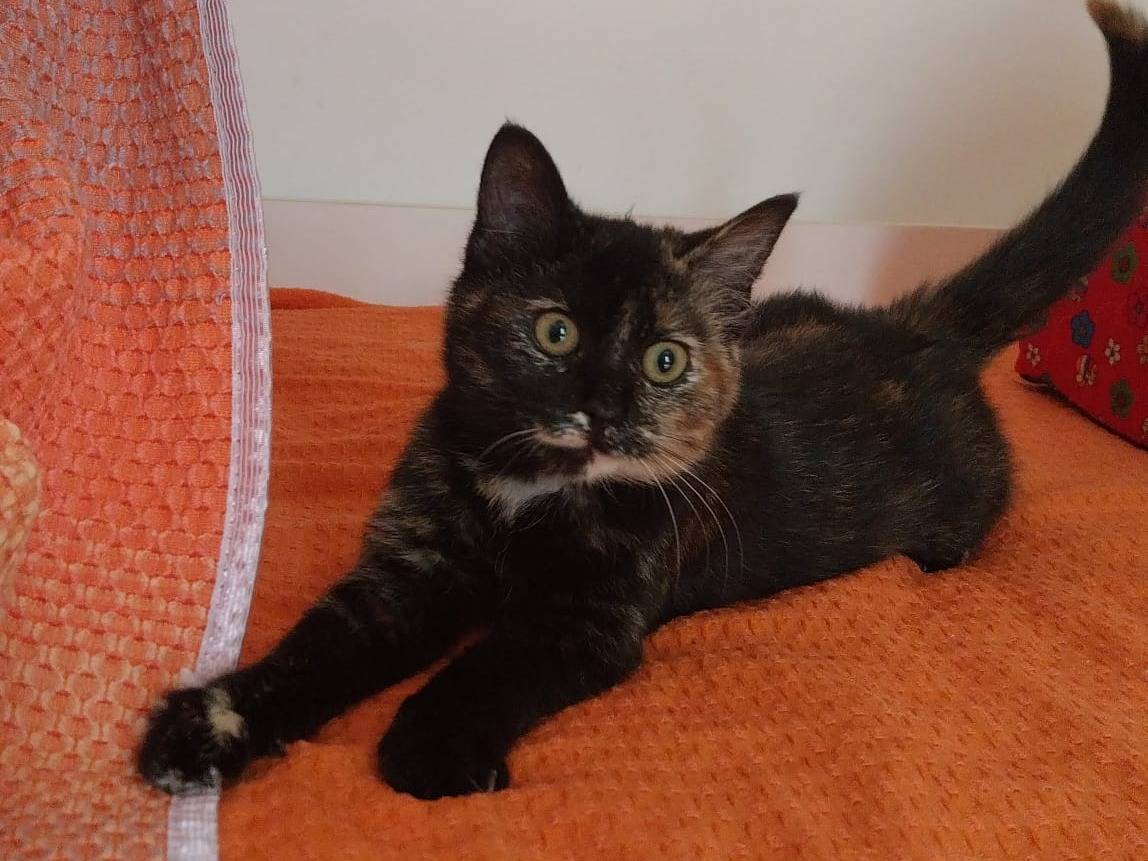 Margot è una dolcissima gattina meticcia di elegante pelo corto, attualmente situata a Viterbo. Nato nell'ottobre del 2025, questo piccolo tesoro tricolore sta cercando una famiglia che possa offrirle tanto amore e affetto. Margot è nota per essere supercoccolona e non perde occasione per mostrare il suo affetto attraverso dolci fusa. Sebbene sia sverminata e vaccinata, è importante sapere che non è ancora sterilizzata, quindi un'attenzione particolare sarà necessaria in questo senso. È una gattina che sicuramente porterà gioia e felicità in ogni casa, con la sua personalità affettuosa e il suo desiderio di essere al centro delle attenzioni. Se cerchi una compagna di giochi che ti faccia sorridere con la sua allegria e il suo modo affettuoso di approcciarsi alle persone, Margot è la scelta perfetta per te.